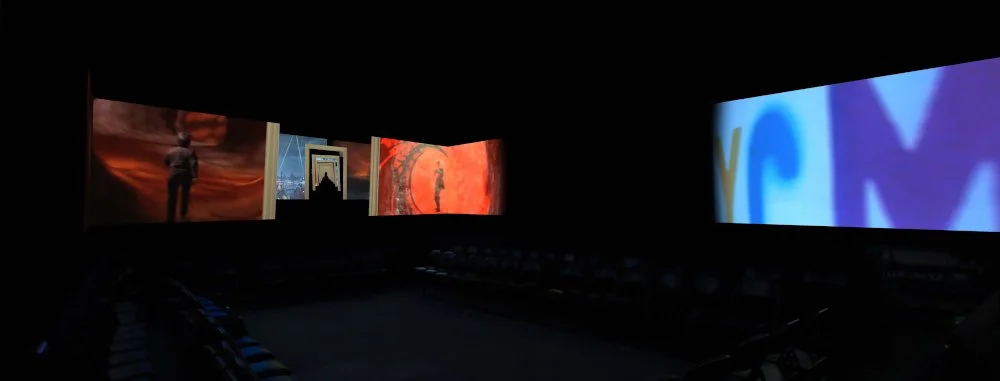A 10 screen / 8 speaker piece, with seamless wrap around projection and surround sound where the audience sit inside. It uses edited collage sewn together in a giant patchwork. Pull on a thread and watch whole new narratives expand and unravel all at once on a 360º palette. The project has been a work in progress since 2017, and is showing for the first time in 2021 in feature length format.
